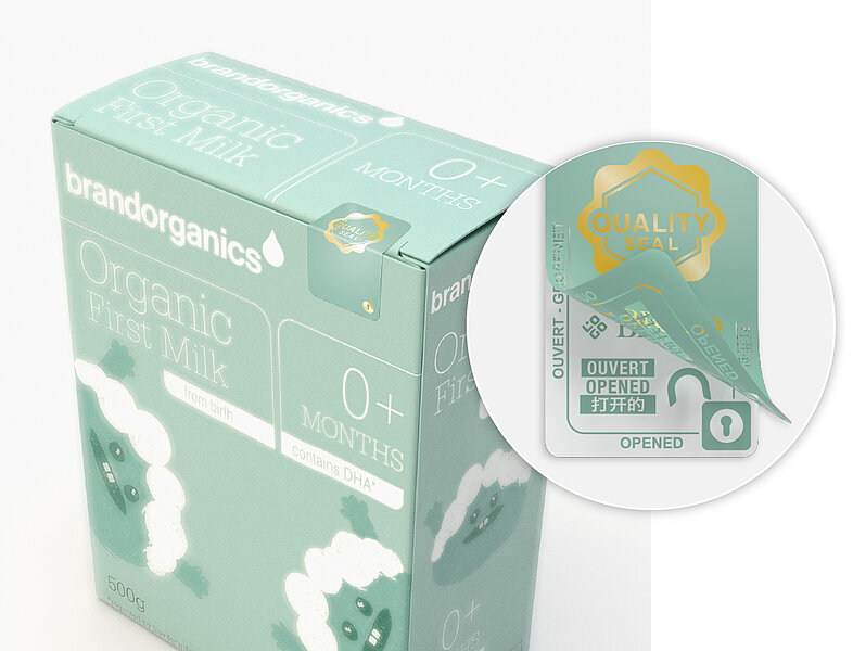揭开留底防伪标签灌装罐或袋装产品是该领域最大风险之一。我们的揭开留底防伪标签能即时显现任何开封或重复使用痕迹。当传统封口因空间或设计限制不适用时,我们提供数字化防灌装替代方案。通过将罐盖与容器上的唯一代码关联,家长可即时扫描确认产品是否遭篡改。