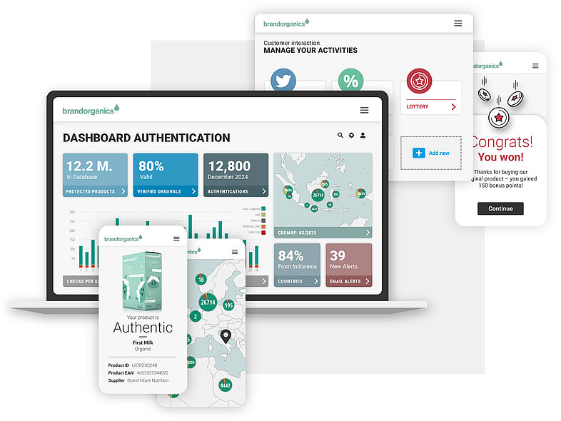SCRIBOS 360 数字平台整合所有防伪解决方案,将每次扫描转化为可操作的洞察。家长、合作伙伴及监管机构可通过智能手机即时验证产品真伪,品牌方则能实时掌握可疑活动、产品流向及灰色市场动态。