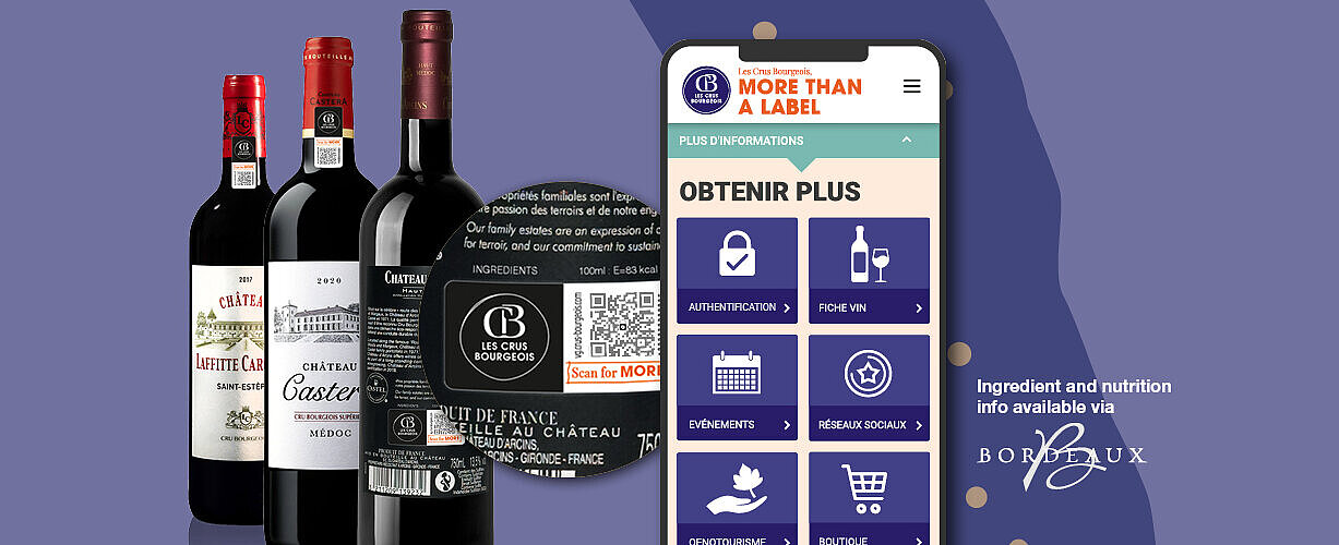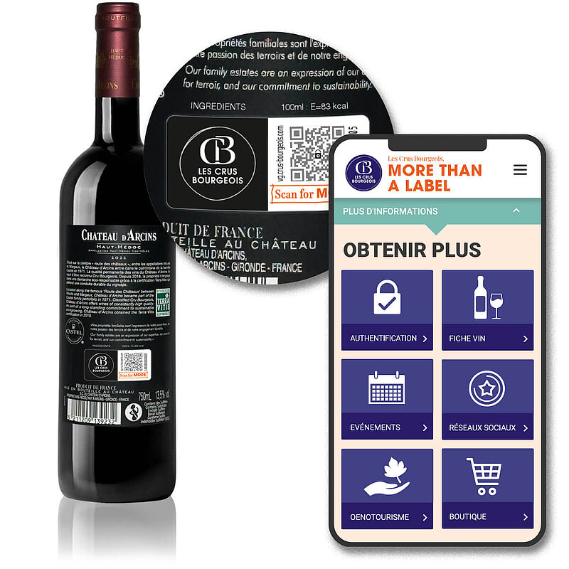 除防伪验证外,防伪码ValiGate® 标签还可解锁一系列高附加值的数字内容。用户可查阅符合现行法规要求的营养成分信息及配料清单,该内容通过与 CIVB 合作,并借助其 Smart Bordeaux 应用进行呈现。