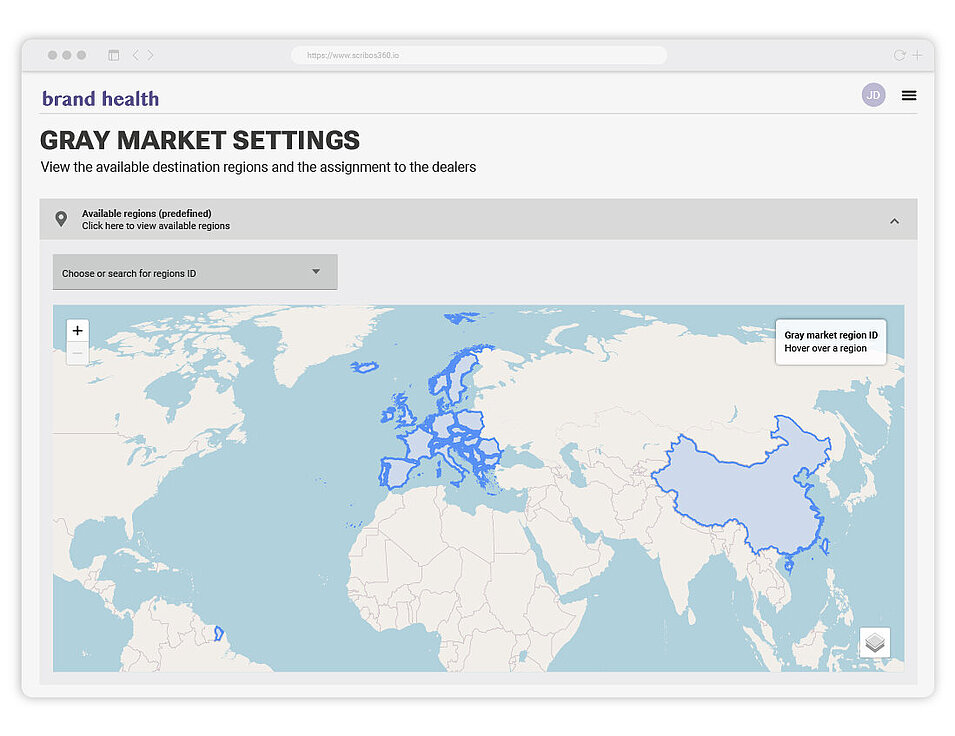 品牌可定义产品的允许销售区域,并通过扫描数据追踪产品出现的位置。一旦产品出现在指定区域之外,系统将自动标记并提示审核。