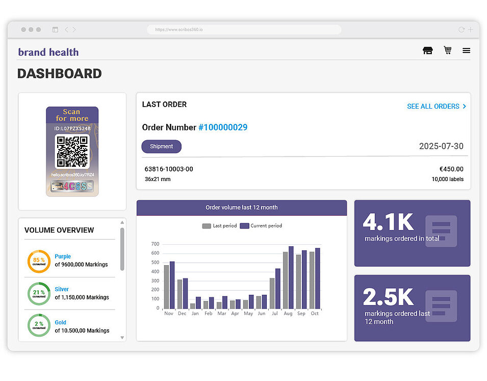 SCRIBOS 360 提供安全且可扩展的防伪与产品认证解决方案,帮助品牌实现: