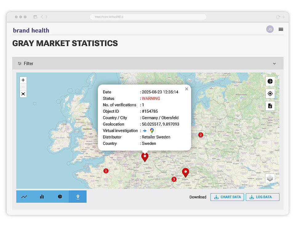 SCRIBOS 360 报告服务适用于希望获得结构化分析结果、但不需要直接操作平台的企业。我们的专家将对认证数据和市场数据进行分析,并提供简明扼要的报告,支持快速决策、内部协同以及有信心的执法行动。