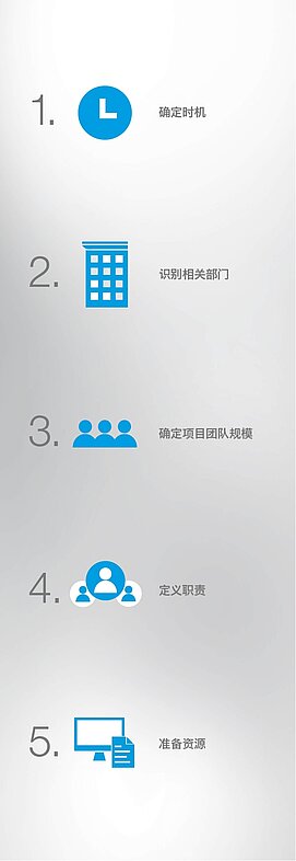 项目团队的规模当然要根据项目范畴和企业规模而定。不过:少就是多。相关部门应当只安排一位代表。因为过大的项目团队会使决策流程变慢。