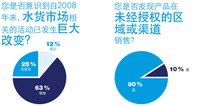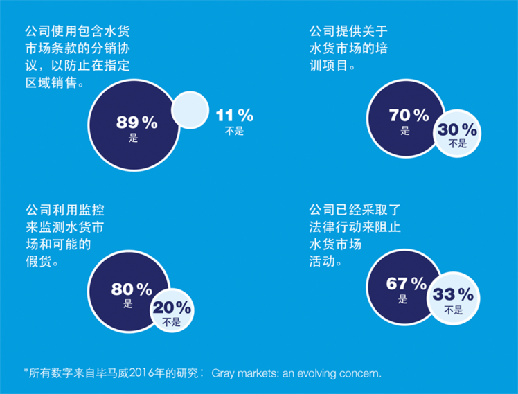 在全球,每年仅技术产品就有价值约600亿美元的产品通过未经授权的渠道销售1。毕马威的一项研究显示,在接受调查的公司中,超过60%的公司近年来发现水货市场有所增加,90%的公司已经发现他们自己的产品在未经自己同意的情况下在水货市场上出售。