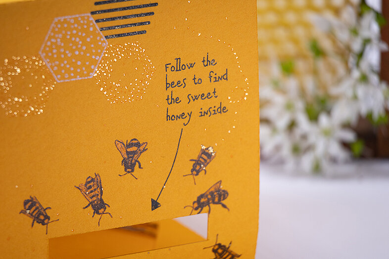 库尔兹的数字加工能力在包装的视觉和触觉吸引力方面发挥了重要作用。包装表面既有光滑的纸面,也有粗糙的纸面,并通过蜜蜂腿上的花粉等精细细节来增强触感。细点、精致的线条和网格等各种触感效果贯穿整个包装。包装上的标签是用 DM-JETLINER 2D 完成的,它可以制作出平整、可套印的金属效果,而且光彩夺目。包装本身则使用了 DM-MAXLINER 3D,实现了广泛的触觉效果。这些设备确保包装不仅外观精美,而且触感独特。
