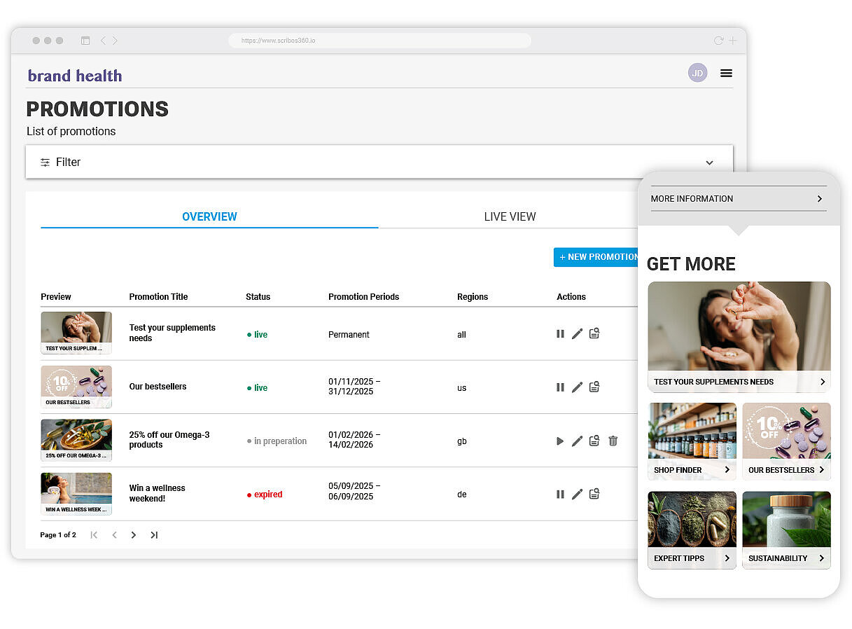 互动模块使品牌能够直接通过正品产品开展数字营销活动。产品完成认证后,将自动打开品牌专属的数字界面,展示由 SCRIBOS 360 后台配置的按钮和内容。